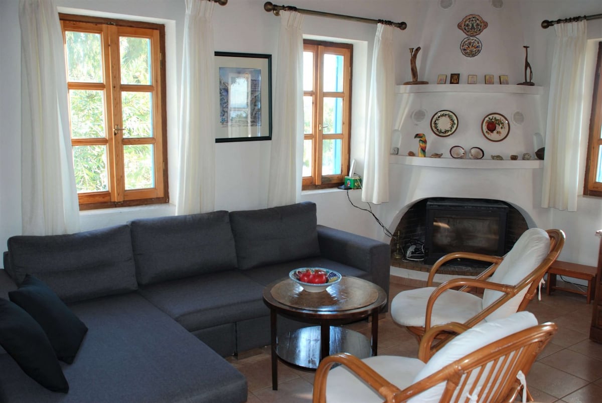 Tá an áit speisialta seo gar do gach rud, rud a fhágann go bhfuil sé éasca do thuras a phleanáil. Teach beag teolaí i gcomharsanacht chiúin i gcroílár an oileáin. Níl tú suite ach 5 -8 nóiméad siúil ó phríomhchalafort Patitiri Alonissos áit ar féidir leat bus a fháil chuig na tránna agus an Old Chora, tacsaí, margadh, caifé, cógaslann, bialanna, oifigí ticéad. Déan iniúchadh ar an tírdhreach álainn leis na crainn agus na plandaí atá timpeall na háite seo le fanacht.