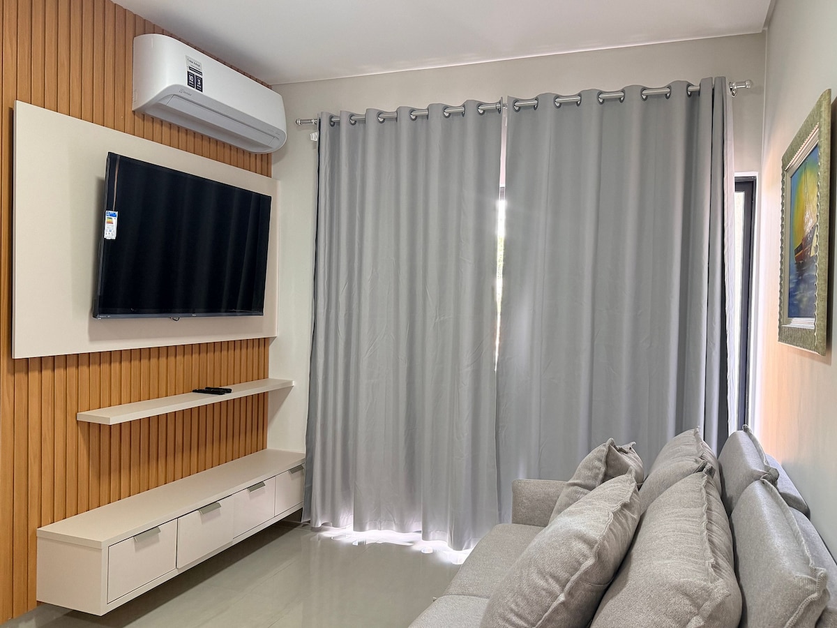 Esta é a casa que você procura para suas férias em família! Com três suítes auper confortáveis, com entradas independentes, a casa comoda até 10 pessoas. Possui sala de TV, cozinha interna e varanda Gourmet super completa, que é o coração da casa. Todos os ambientes são climatizados, garantindo o conforto em dias quentes. A área externa é um verdadeiro convite ao lazer: a piscina é cercada, garantindo a segurança das crianças, que terão um espaço enorme para brincar e se divertir à vontade.
