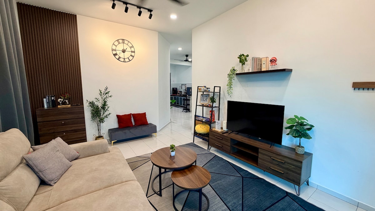 Deartha ar mhaithe le compord na dteaghlach Moslamach. 🛏️ Toilleadh -3 sheomra leapa feistithe le leaba na Banríona +aerchóiriú - seomra suí aerchóirithe 🍽️ Cistin & Uirlis: - Cistin feistithe le cócaireán ríse, cumascóir, friochtán - Scagaire uisce cuach Meaisín níocháin + triomadóir éadaí - gallúnach chithfholcadáin & seampú curtha ar fáil 📺 Áiseanna eile: Wi - Fi saor in aisce -TV +Astro NJOI - Iron & clár Oiriúnach do Mhoslamaigh: - Saoráid Sejadah & treo Qibla ar fáil - Úsáidtear an chistin chun halal mknn shj a chur ar fáil - foirfe do adhradh Moslamach & saoire teaghlaigh