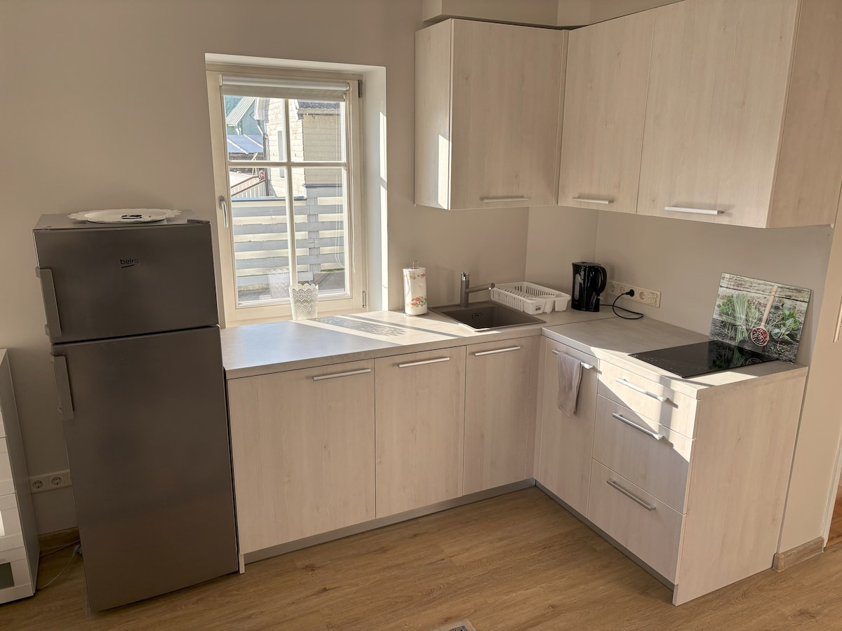 Tá an t - árasán aon seomra leapa cluthar galánta seo ina bhfuil cistin agus áit itheacháin ar leith foirfe do lánúineacha, tá an t - atmaisféar rómánsúil agus suaimhneach. Is féidir leat áit pháirceála saor in aisce a úsáid taobh istigh de chlós príobháideach an tí. Tá an suíomh foirfe, tá gach rud gar. Is féidir leat siúl go lár na cathrach i gceann 5 nóiméad, tá trá bhán ghainimh thart ar 10 nóiméad siúil. Tar agus bain sult as Pärnu - príomhchathair samhraidh na hEastóine!