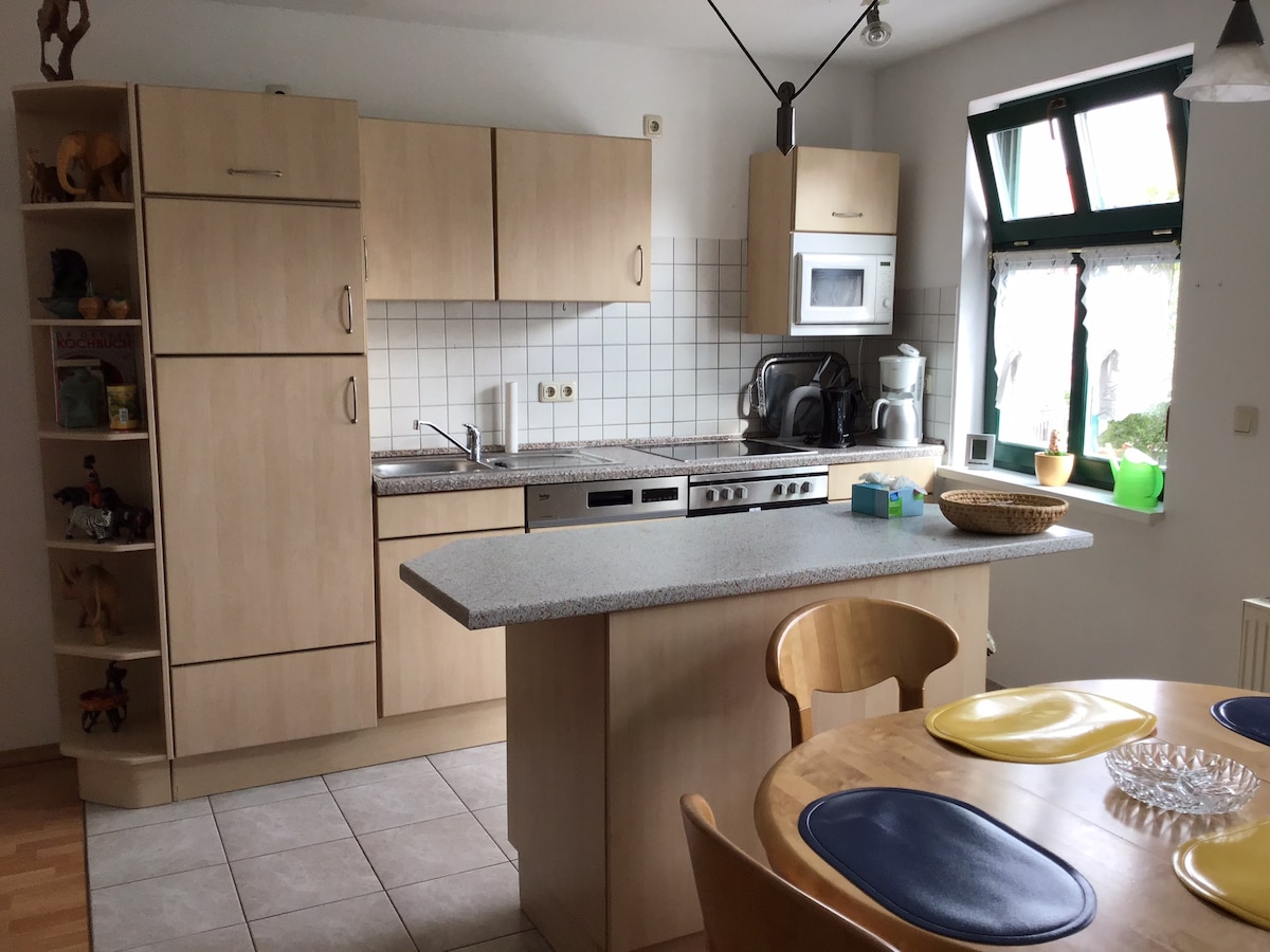 Tá 2 appartments ar cíos againn. Tá tú ag féachaint ar an aonad níos mó. (An t - aonad níos lú a gheobhaidh tú anseo: https://www.airbnb.de/rooms/21896074) Rinneadh athchóiriú ar an cobhsaí ó 1891 i dteach 3 aonad sa bhaile in 2016. Is obair idir lámha iad na gairdíní máguaird. Tá an réadmhaoin measartha mór agus is féidir leat áit chiúin shuaimhneach a fháil sa ghrian i gcónaí. Tá spéir na hoíche iontach do réalta gazing. Tá suas le 10 dteaghlach stork sa sráidbhaile ó Aibreán go Lúnasa gach bliain.