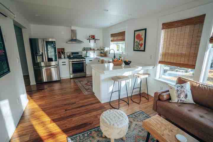 Fíon síos & Lig do Scíth! Is é an suíomh gach rud leis an réadmhaoin nua - athchóirithe seo ina dtaispeántar taobh istigh agus saoráidí an tí feirme. Tá do leaba plush King Size ag fanacht leat tar éis lá i Downtown Paso Robles. Faigh blaiseadh de bhialanna, fíonlanna, beáir agus neart áiteanna éagsúla le siopadóireacht a dhéanamh. Tá tú ar shiúl freisin ó chaife bricfeasta is fearr le muintir na háite agus gan ach 2 bhloc ó Siúlóid Mhargaidh Paso ina bhfuil bialanna áitiúla, fíon agus go leor eile! Táimid oiriúnach do pheataí (tá táille bhreise i bhfeidhm) agus táimid ag tnúth le tú a óstáil!