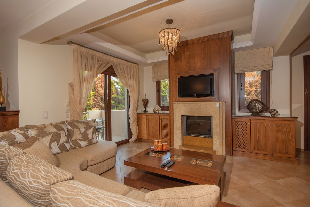 Lig do scíth leis an teaghlach ar fad sa lóistín síochánta seo, ina bhfuil linn snámha mhór chomh maith le tobán te den scoth. Tá an áit chónaithe timpeallaithe ag an ngaineamhlach gan teorainn agus tá fuaim uisce reatha an easa linn snámha in éineacht leis an am céanna. Tá seomra suí fairsing, cistin, trí sheomra leapa agus dhá sheomra folctha ann. Tá sé suite idir sráidbhailte Kremasti agus Maritsa.
