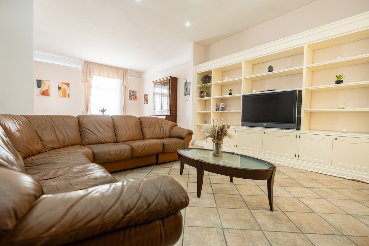 Áit chónaithe enchanting a chuimsíonn elegance agus compord i ngach mion. Agus tú ag trasnú na tairsí, cuirfear bealach isteach leathan romhat a théann chuig spásanna geala aeracha an áit chónaithe. Tá siopa leabhar den scoth sa seomra suí, rud a chruthaíonn atmaisféar fáilteach saothraithe. Tá trí sheomra leapa fairsinge sa teach, agus tá blas agus aird ar mhionsonraí i ngach ceann acu. Is féidir leat do scíth a ligean agus athghiniúint a dhéanamh freisin sa jacuzzi, tumtha in uisce te agus duilliúr.