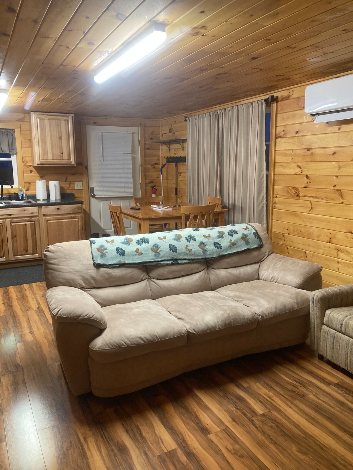 This rustic cabin has everything! Access to the lake, a complimentary canoe and gear is part of the deal. A boat slip can be arranged, there is access to ATV trails. It is also a perfect hunting cabin. There is running water, hot water, and electricity. The area is rustic, with excellent access, paved roads and nearby supplies. The cabin has a small refrigerator and a 10 gallon hot water tank as well as many small appliances.