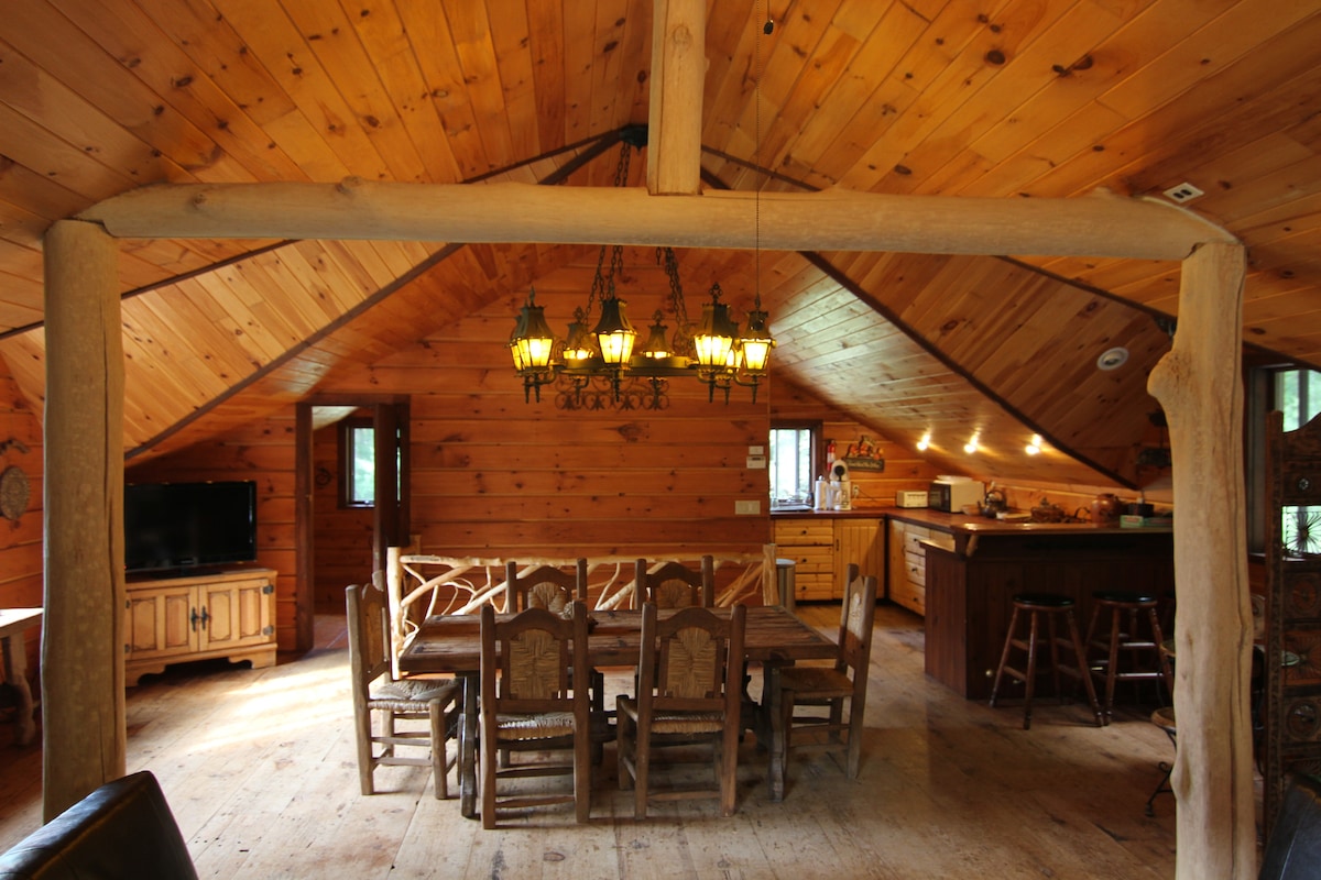 Lig do scíth sa dúlra nuair a fhanann tú ag an tearmann suaimhneach seo atá suite ar 2 acra chiúin d'iontas coillteach socair. Freastalaíonn an cábán 2 leaba, 1 leaba ar suas le 8 n - aoi. Seomra suí fairsing agus go leor spás cistine bí cinnte go bhfuil siamsaíocht á cur ar fáil do do ghrúpa. Deic lasmuigh le gríoscán d'oícheanta beárbaiciú. Tá an póirse tosaigh clúdaithe oiriúnach chun féachaint ar an bhfiadhúlra ag dul tríd an réadmhaoin. Teolaí in aice leis an bpoll dóiteáin le haghaidh spraoi tinn! Bain sult as iniúchadh a dhéanamh ar gach rud atá le tairiscint ag na Poconos nuair a fhanann tú anseo!