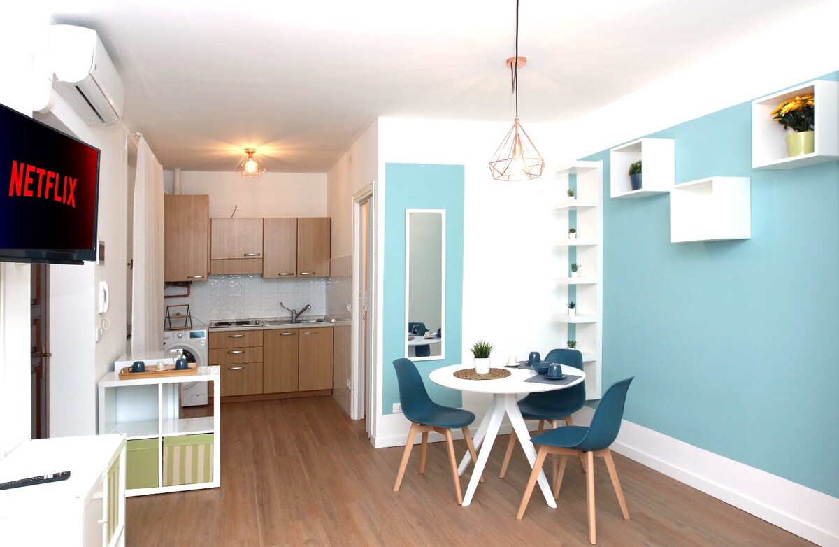Árasán álainn dhá sheomra nua-athchóirithe atá suite in áit straitéiseach an-ghar don stáisiún, don lár, do na hospidéil, d'ionad CNAO agus do na hinstitiúidí ollscoile. Tá an t-árasán ar an dara hurlár de theach dhá stór scoite. Tá seomra suí ann le cistin, leaba thoilg agus teilifís chliste 24'', seomra leapa le vardrús agus leaba dhúbailte, seomra folctha le cithfholcadán. Troscán iomlán nua agus nua - aimseartha. Tá aerchóiritheoir i ngach seomra. Ollmhargadh 50 m