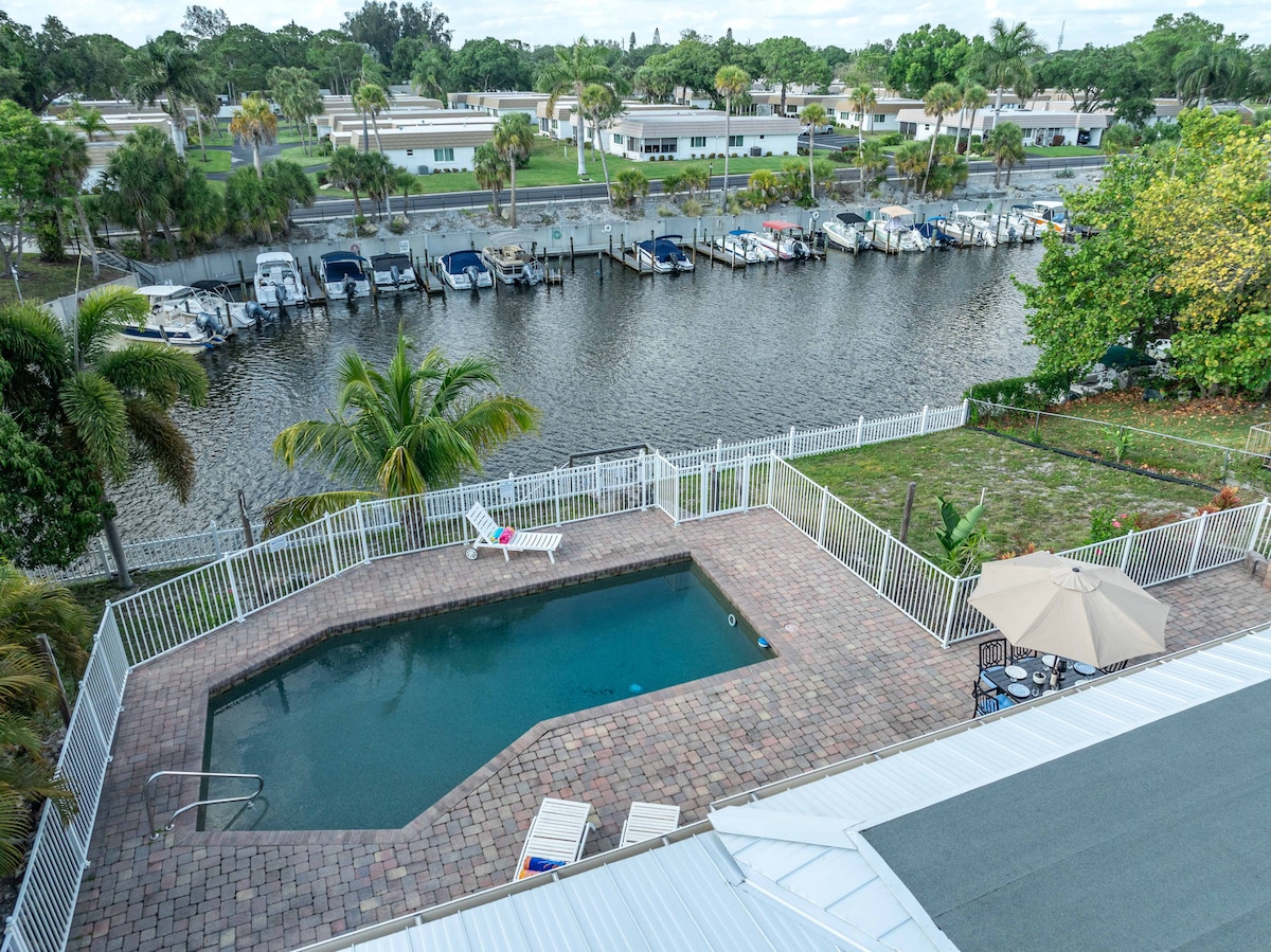 Fáilte chuig D'Oisín Príobháideach Cois Uisce! Tá 3 sheomra leapa, 2 sheomra folctha agus seomra cluichí OLLMHÓR faoi rialú aeráide sa teach fairsing seo ar chanáil shuaimhneach amach ó Bhá Sarasota! Bain sult as rochtain dhíreach ar uisce le haghaidh iascaireacht, curachóireacht, cadhcáil agus mainicíní feiceála. Díreach 7 nóiméad ón aerfort agus 15 nóiméad ó Sarasota, beidh rochtain agat ar thránna áille amhail Siesta Key & Anna Maria Island. Ag tairiscint Wi - Fi saor in aisce, gríoscán beárbaiciú & firepit, tá an tearmann seo foirfe do theaghlaigh atá ag lorg scíthe agus eachtraíochta!