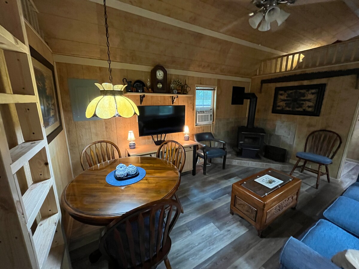 Cábán teolaí sa Choill! Lochta Aon Seomra Leapa Plus Thart ar 16.8 míle ó Chlóis Aonaigh Perry agus 8 míle ó I -75. Baill de Ghalfchúrsa Snáthaidí Pine agus Caife 1/2 mhíle ar shiúl. Tá cónaí orainn anseo le 37 bliain. Tá an Cábán Cluthar suite ar ár réadmhaoin choillteach, thart ar 70 troigh ón teach, agus tá ceathrar aíonna ina gcodladh ann: 1 seomra leapa cúil agus 1 spás lochta lastuas. (Uisce maith blasta anseo agus meaisín níocháin/triomadóir.) Ar fáil freisin le Classy Cottage in the Woods (2 BR - 2 Bath) thart ar 200 troigh ar shiúl.
