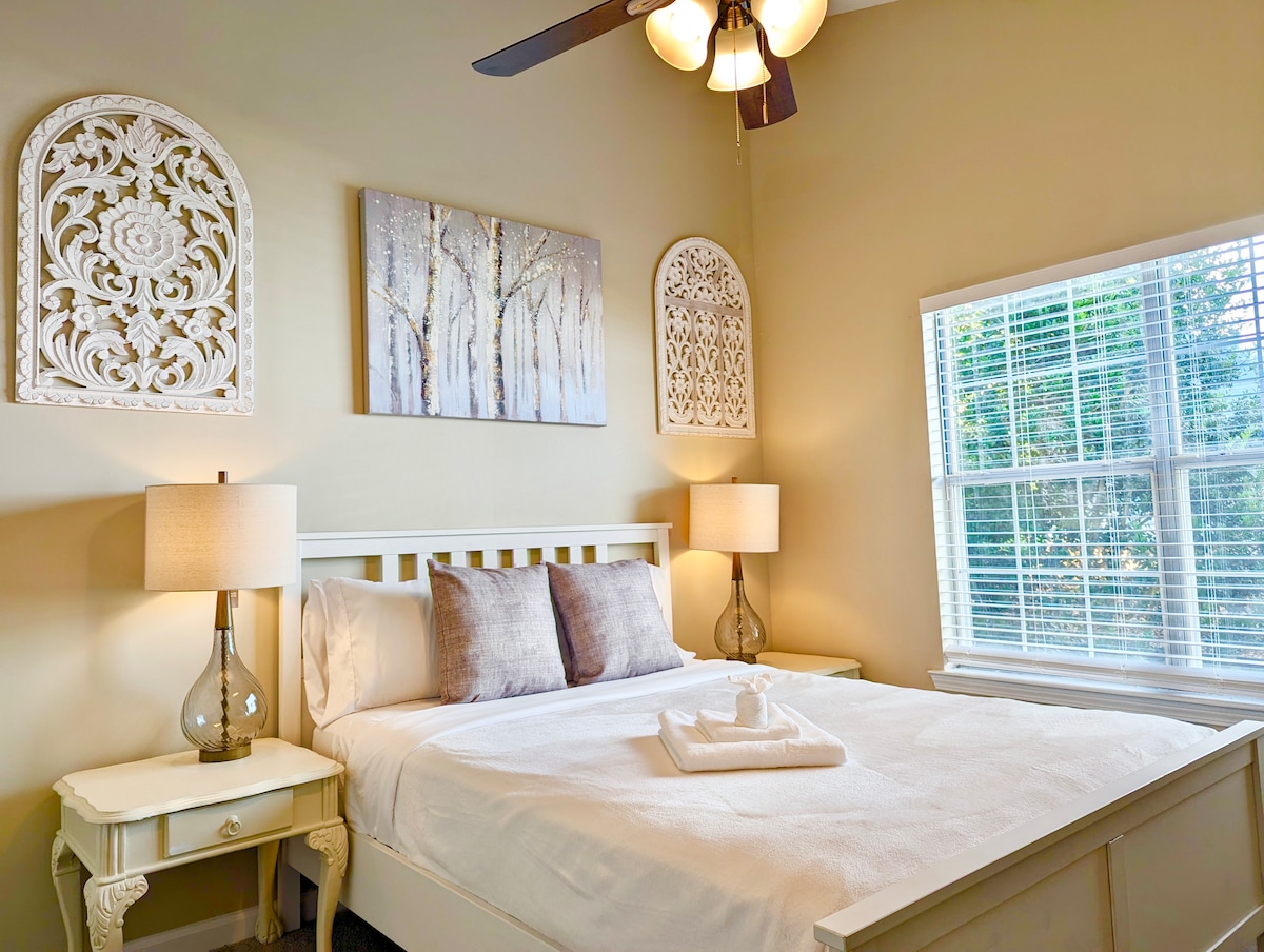 Do thearmann príobháideach athchóirithe in Sandy Springs—foirfe do lánúineacha, do theaghlaigh, do chianobair agus d'altraí taistil. Sábháilte, ciúin, dea-dheartha, le rochtain thapa ar mhórcheantar uirbeach Atlanta. Bealach isteach ☑ príobháideach ☑ Leaba King Nectar ☑ Tocht urláir le trí fhilleadh (iontach do pháistí agus d'aíonna breise) ☑ 328 Mbps WiFi + deasc ☑ Cistin iomlán ☑ Meaisín níocháin + triomadóir ☑ Pacáiste súgartha + bréagáin ☑ Luchtaire feithiclí leictreacha ☑ Dearadh nua-aimseartha suaimhneach “Ní chuireann pictiúir an áit in iúl go hiomlán!” 7 nóiméad → DT Dunwoody 15 nóim → Alpharetta 25 nóim → DT Atlanta