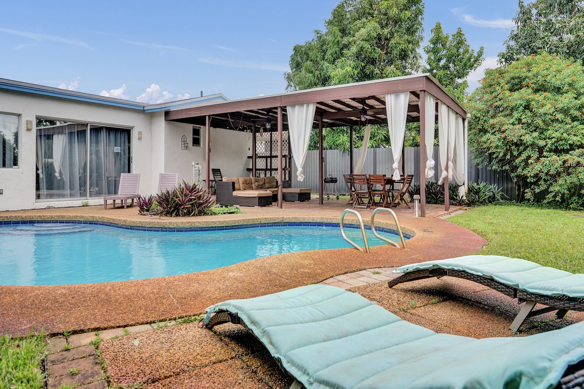 Éalaigh go dtí an teach fairsing 3BR, 3BA linn snámha seo, atá foirfe do spraoi teaghlaigh nó do shaoire ghearr ghrúpa. Lig do scíth ag an linn snámha phríobháideach iontach, tine suas an beárbaiciú, agus dinnéar al fresco ar an deic ghrianmhar. Taobh istigh, bain sult as décor galánta, cistin lánfheistithe, agus seomraí codlata compordacha ina bhfuil línéadach tí úr. Cuireann gach seomra folctha saoráidí nua - aimseartha ar fáil le haghaidh mothú cosúil le spá. Níl ach nóiméad ó thránna, ó bhia agus ó shiopadóireacht - tá do thearmann foirfe in Hollywood, Florida ag fanacht leat!