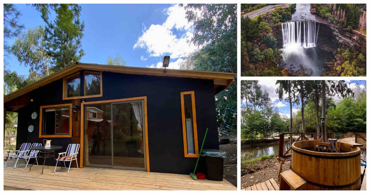 Cuirim spás 2500 mtr2 d'áiteanna glasa, spás do bbq agus sruth atá oiriúnach le haghaidh sólaistí ar fáil dóibh. Is duitse amháin atá an spás, ní roinntear é le haíonna eile nó le níos mó cábán. Tá an teach 50mtr2, atá feistithe le gach rud a theastaíonn uait le haghaidh fanacht compordach. Tá sé suite 300 méadar ó mhórbhealach 5 ó dheas, ar an mbealach go dtí an Aguada le rochtain phábháilte den scoth. Tá titim Los Saltos del Laja 2 nóiméad ar shiúl.