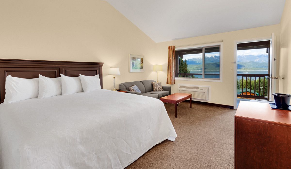 Tairgeann na seomraí galánta seo radhairc fhairsinge gan sárú ar loch Kootenay agus oighearshruth Kokanee ó do bhalcóin phríobháideach. Is seomra leapa príobháideach iad ina bhfuil tocht rímhéide sómasach, áit mhór chónaithe ina bhfuil leaba mhurphy ar mhéid banríona, seomra folctha mór ina bhfuil cithfholcadán tílithe saincheaptha, níochán ar an láthair agus cistin nua - aimseartha lánfheistithe ina bhfuil cuntair eibhir agus fearais chruach dhosmálta, ina bhfuil na soláthairtí go léir a theastódh uait chun béile iomlán a chócaráil.