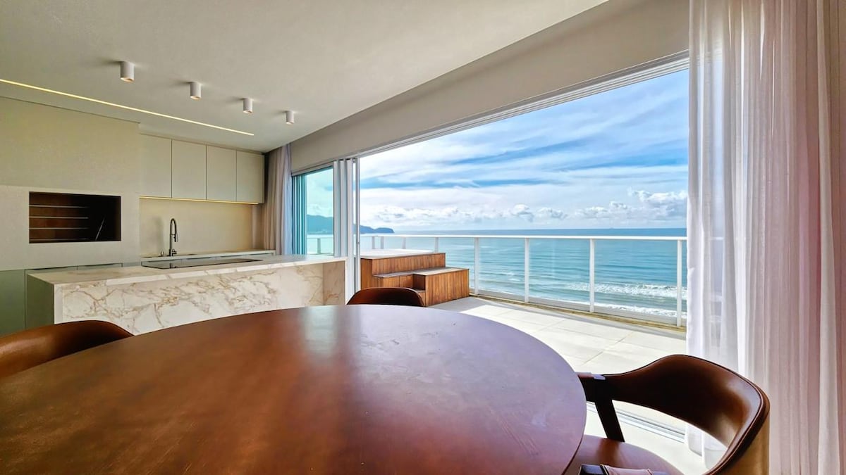 Árasán 25 méadar ó thrá Penha agus ag breathnú amach ar an bhfarraige agus gar don bhácús, do na beáir, do na bialanna atá suite thart ar 500 méadar ó Parque Beto Carrero World. Tá 92 méadar cearnach, 2 svuít, 1 seomra folctha, seomra suí ( wi - fi, teilifís agus Netflix) cistin chomhtháite, níochán, balcóin le beárbaiciú agus tábla beárbaiciú san árasán. Tá 2 spás páirceála san árasán agus tá sé feistithe go hiomlán lena n - áirítear éadaí leapa, tábla agus folcadán.