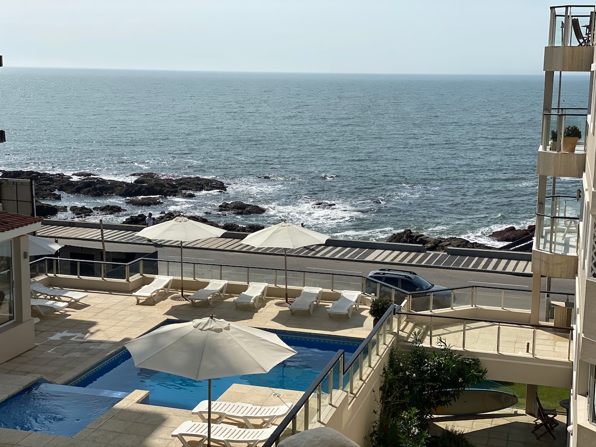Tá an t - árasán suite ag bealach isteach na leithinse, gan fadhbanna idirthurais, 2 bhloc ó chríochfort bus Punta del Este, os comhair an Casino Nogaro agus gar do phictiúrlanna agus do bhialanna. Ollmhargadh 1 1/2 bloic ar shiúl. An - mhaith! Garáiste san fhoirgneamh!