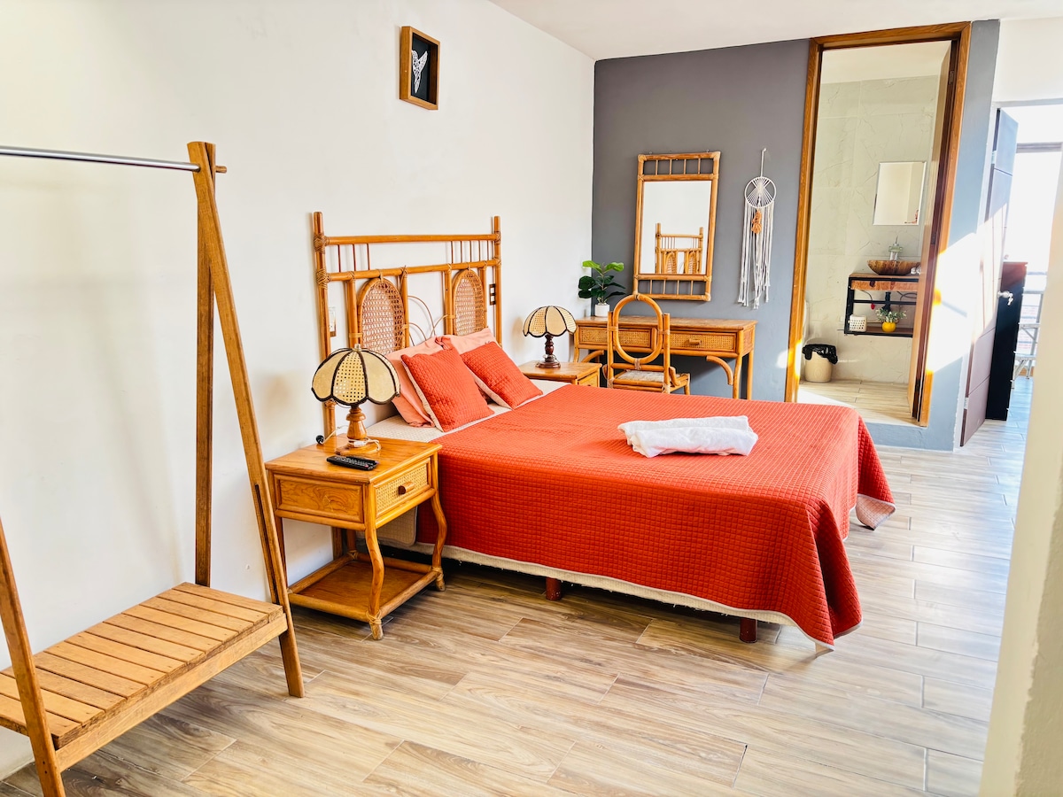 Tá teach an Ealaíontóra i gcroílár chathair Pénjamo, is teach é ar an dara hurlár, a iompraíonn tú chuig spás suaimhnis. Tá paitió príobháideach le balcóin i dtreo na sráide sa seomra Aibnb, agus tá sé scartha ón gcuid eile den teach, agus tá rochtain láithreach aige ar an tsráid. Tá go leor áiteanna turasóireachta in aice láimhe ag Pénjamo.. an hacienda Corralejo, spánna, ceantair seandálaíochta i measc go leor nithe eile.