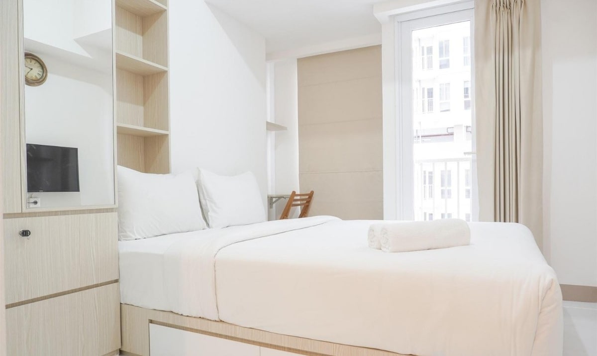 Árasán fairsing teolaí 1 sheomra leapa ina bhfuil seomra suí agus balcóin ag Citralake Suites, saoire ghearr iontach West Jakarta cois locha. Suite go háisiúil díreach nóiméad ón Aerfort, Pik, Puri Indah agus Sunset Avenue, tá sé éasca iniúchadh a dhéanamh ar an gcathair. Seas taobh amuigh agus níl tú ach siúlóid 1 nóiméad ó Ciffest, áit itheacháin bhríomhar ina bhfuil neart roghanna bia, ollmhargaí agus ATManna. Soláthraíonn ár n - aonad 1 BR spás sómasach compordach do suas le 3 aoi, le cistinéad, Wi - Fi saor in aisce, agus Netflix.