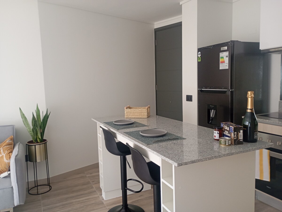 Árasán álainn ar cíos in Peñuelas, foirfe do lánúin, áit an-chiúin cúpla céim ón trá, le bealach coisithe díreach chuici, gar do Enjoy agus don cheantar bia. Árasán, tá 1 sheomra leapa ann le leaba dhúbailte. Cistin Mheiriceánach, seomra suí, seomra folctha agus balcóin. Tá páirceáil phríobháideach ann. I spásanna coiteanna beidh linn snámha ar fáil agat (faoi shéasúr an earraigh samhraidh), áiteanna glasa, cluichí spóirt lasmuigh agus quinchos.
