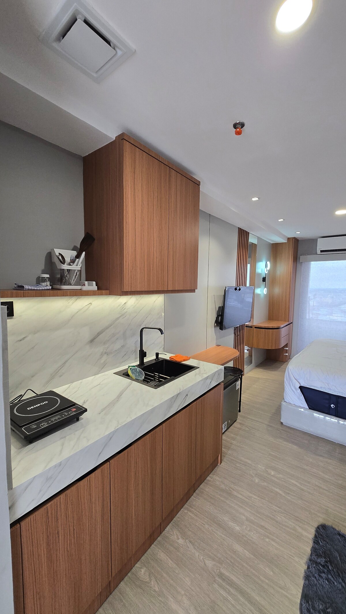 Téigh siar agus lig do scíth sa spás socair galánta seo. Lonnaithe i gCinatown Medan, áit ar féidir leat taitneamh a bhaint as miasa éagsúla agus áitiúla, Gan trácht ar go bhfuil an ceantar seo gar do roinnt margadh traidisiúnta inar féidir leat blaiseadh a fháil de shiopa áitiúil bricfeasta agus earraí grósaera. Gnéithe: - Seomra aerchóirithe - Teilifís Chliste 43" orlach (Netflix, Disney+ srl) - Cistin Iomlán Socraithe le sorn - Cuisneoir - Seomra folctha le doirteal, cithfholcadán agus téitheoir uisce, Bidet san áireamh - Vardrús dlúthmhéide