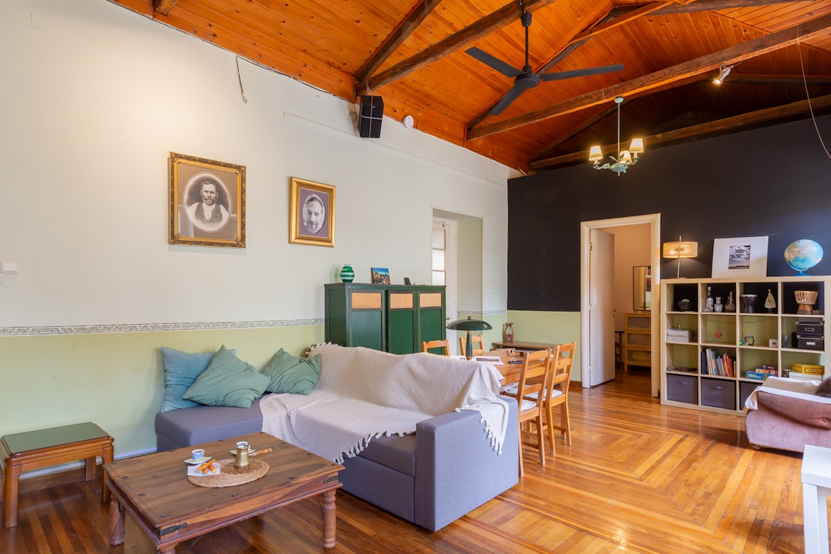 Neoclassical classy apartment 145 m2, in the center of Athens:High carved ceilings, two bedrooms with double beds, wifi,kitchen, emergency supplies,desk for laptop,air conditioning,hangers,TV,washing machine,high-fidelity sound system, 24-hour hot water,autonomous central heating,fireplace,iron,hair dryer, shampoo. Only 5 mins walk from Victoria metro station,6 mins walk from Attiki metro station, 2 mins walk to bus/trolley stations,10 mins walk from the National Archeological Museum