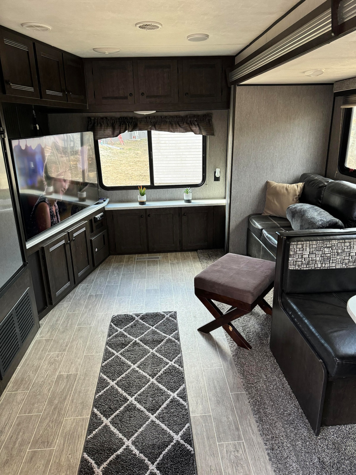 Subhadóir gaoithe 34 troigh le sleamhnán dúbailte. An - mhór. Leaba bhanríona sa chúl le haghaidh príobháideachta. 2 futon agus d'fhéadfadh sé an tábla a leagan síos le haghaidh leaba bheag bhreise. Cistin agus seomra folctha iomlán. Riocht iontach. Cosúil le branda nua. Taobh mór féarach le poll bon fire chun taitneamh a bhaint as nó cócaireacht a dhéanamh os a chionn.