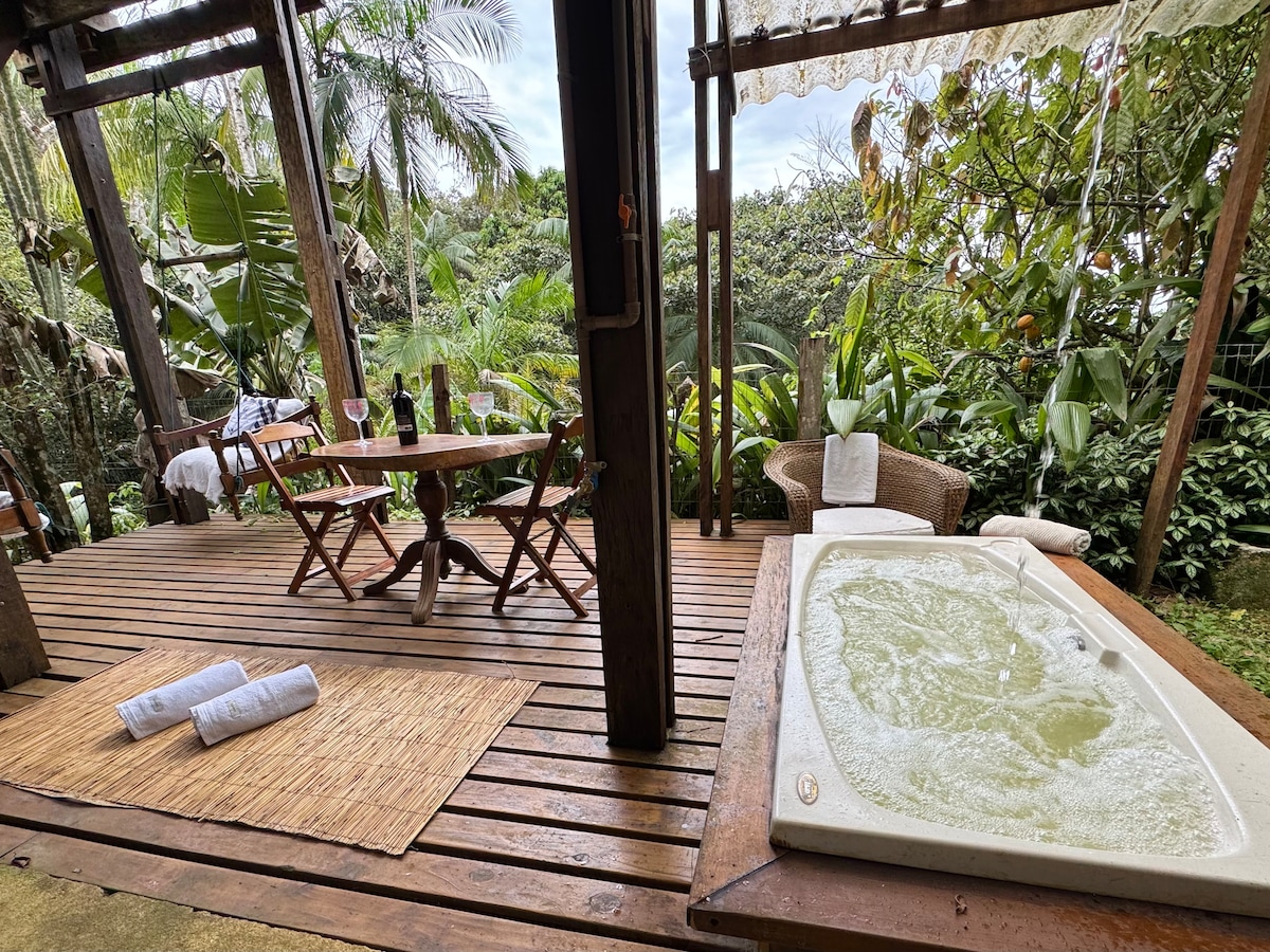 Um refúgio encantador em meio à Mata Atlântica, cercado por natureza exuberante. A propriedade conta com cachoeira, piscina natural, trilhas para 2 cachoeiras, mirante com vista para o mar, hidromassagem, redes, balanço, área de lazer completa. A charmosa cabana rústica possui lareira, fogão e forno a lenha, espaço estudo ou de trabalho. Um lugar único e tranquilo, embalado pelo som das águas da cachoeira e dos pássaros, perfeito p se conectar com a natureza, fica apenas 10 minutos da praia.