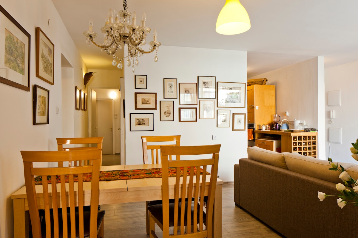 Nua - Deartha - árasán 3bed/2bath! Achar gearr siúil ó chaiféanna, páirceanna, siopaí & siopa grósaera. Codlaíonn sé go compordach 6. Meaisín níocháin/triomadóir, CáblaTV, Wi - Fi, A/C. Cistin lánfheistithe. Suíocháin bhalcóin thar a bheith uathúil. An chéad urlár; ardaitheoir, páirceáil sannta. In aice le hiompar (traein, bus, tacsaí). Rochtain éasca ar Tel Aviv, Iarúsailéim, Haifa, trí Bhealach 6 in aice láimhe