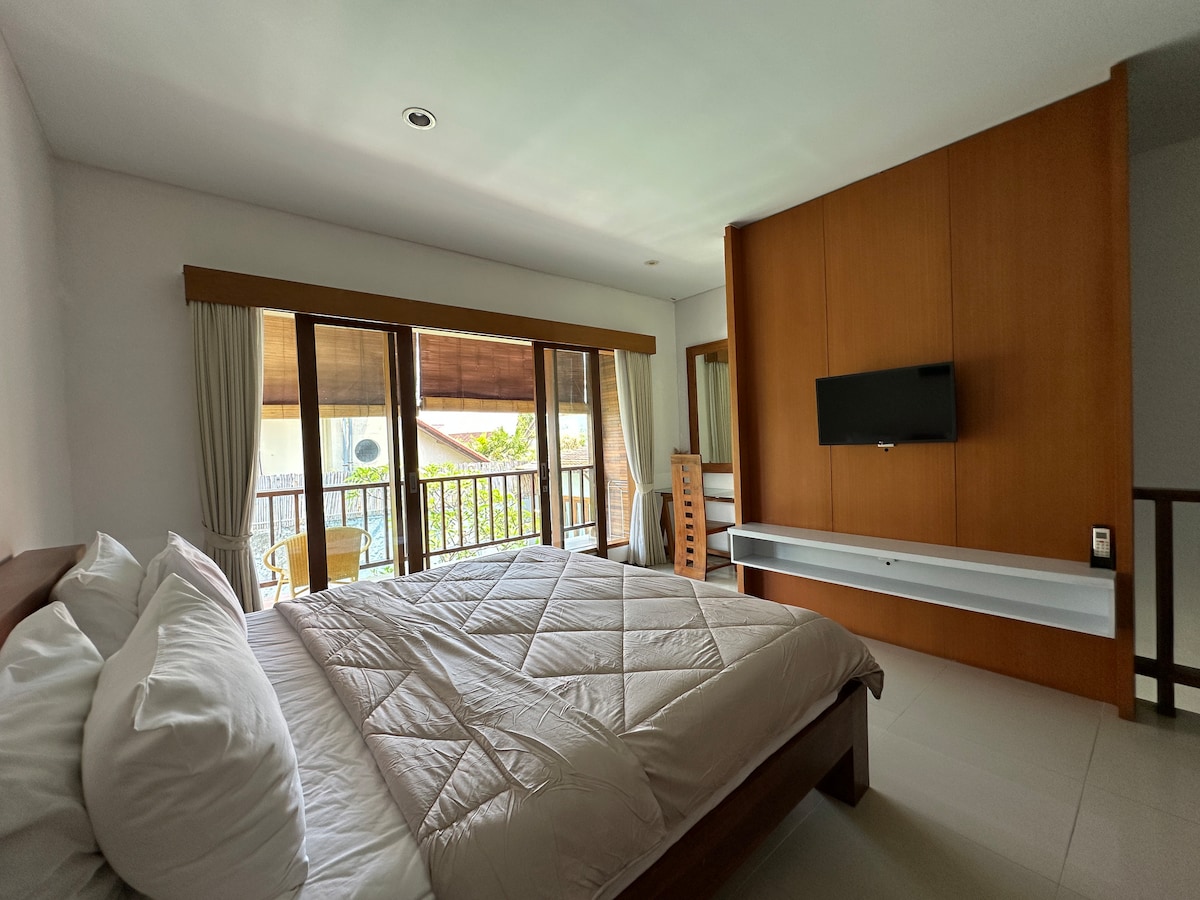 Déan iniúchadh ar Canggu bríomhar ónár óstan Trópaiceach! Neadaithe i gcliathán taobh i gcroílár Batu Bolong (siúlóid 2 nóiméad ó Amo Spa), cumascann ár Svuít Snámha dearadh nua - aimseartha le draíocht Bhailíneach. Foirfe do bheirt aíonna atá ag lorg compoird agus áise. Tum isteach inár linn snámha 14 méadar nó lig do scíth ar do bhalcóin phríobháideach i stíl Bali, agus cuir na snáithíní trópaiceacha ó do tholg ar maos Déan áirithint anois chun bia & caifé faiseanta, agus siamsaíocht oíche a iniúchadh. Tá d'eachtra deiridh in Canggu ag fanacht leat! Nóta :Tá na Villaí tosaigh déanta. Torann