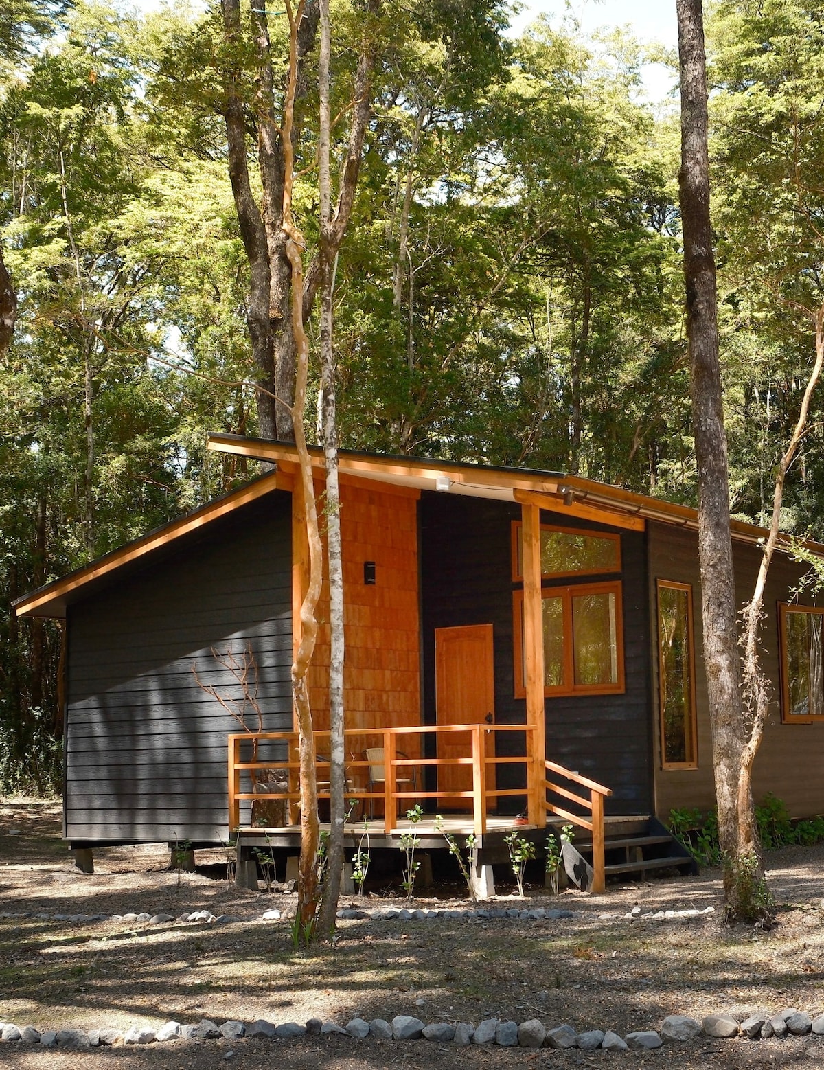 Bain sult as scíth a ligean agus sos a ghlacadh inár gCábán Foraoise, agus crainn dhúchasacha thart air, fiadhúlra éagsúil, áit a gcloisfidh tú an Chucao agus Diucón ag cliúsaíocht, i measc daoine eile. An áit ar féidir leat siúlóidí a dhéanamh ag breathnú amach ar bholcáin Osorno agus Calbuco. In aice le Parque Vicente Pérez Rosales, Loch Todos Los Santos, Saltos de Petrohué, Osorno Bolcán, i measc rudaí eile. Éagsúlacht gníomhaíochtaí spóirt ar nós fánaíocht, rothaíocht, cadhcáil, ceannbhrat, nó díreach taitneamh a bhaint as siúlóid.
