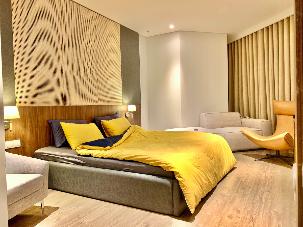 Seomraí ag Apec Muine le troscán caighdeánach óstáin nua-aimseartha, 3 nóiméad go dtí an trá ghainimh bháin, ag déanamh bolg le gréine gan bhróga ar an ngaineamh, ag éisteacht leis na tonnta go compordach an lá ar fad, áit iontach chun tú féin a thumadh sa mhuir mhór agus sa spéir... Agus lig do scíth ag an linn snámha éigríochta leis an radharc is fearr ar aigéan Phan Thiet, toisc go bhfuil an t-ionad saoire ar fad tógtha ar airde idéalach dumhcha gainimh Mui Ne. Buail isteach chun manglam a ól ag an mbeár cois linne snámha agus lig do scíth ar chathaoir shólaise cois linne snámha, bain sult as cócaireacht bhialainn The Bay
