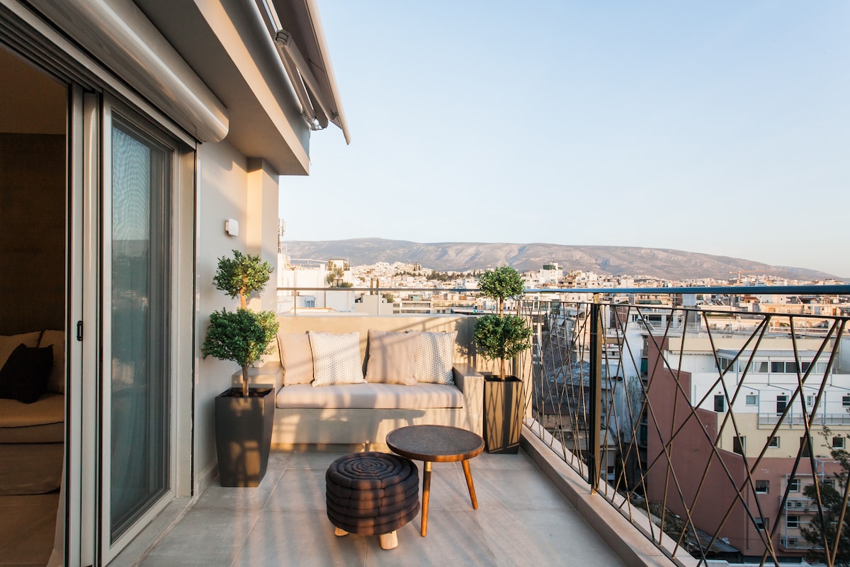Radhairc ar Acropolis gan Smál• Árasán Faoi Dhíon na Spéire Fairsing le 2 Sheomra Leapa