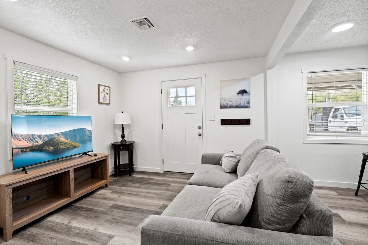 Míle saor ón idirstáit. Tógadh an teach ceardaí álainn seo in 2019 agus tá an aird ar mhionsonraí le feiceáil. Teach príobháideach iomlán, clós mór, meaisín níocháin/triomadóir, cistin iomlán, cithfholcadán tílithe, agus thuas staighre ina bhfuil spás maireachtála agus seomra leapa breise. In aice le Ashland, Jacksonville agus Medford. Fad siúil go dtí an Phoodery, cúinne Clyde, agus mionmhargadh. Níl an spás oiriúnach do lapadáin nó do dhaoine scothaosta mar gheall ar staighre géara a théann chuig seomraí codlata.