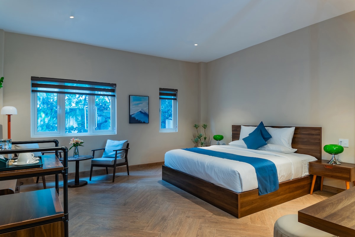 Boutique room với 2 giường đôi 1m4 rộng rãi, nội thất cao cấp. Có khoảng xanh ngay cửa sổ, không gian thoáng mát. - Tiện ích đầy đủ: Nhà bếp, phòng ăn, phòng khách, khu giặt - sấy, toilet sạch sẽ theo tầng. - Ngay trung tâm Q1 – kết nối siêu thuận tiện: + 5 phút đến Nhà thờ Đức Bà, Bưu điện Thành phố, Dinh Độc Lập. + 10 phút đến Phố đi bộ Nguyễn Huệ, Bitexco, Bến Bạch Đằng. + 15 phút đến Chợ Bến Thành, Chợ Tân Định, Phố ẩm thực Hai Bà Trưng. + 25–30 phút di chuyển sân bay Tân Sơn Nhất.
