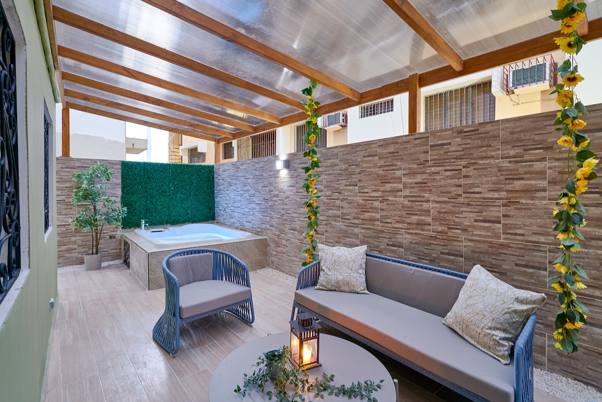 El loft de diseño moderno ubicado en el segundo piso de una casa de diseñador Francés con entrada independiente y terraza privada a minutos del parque Mirador Sur en una zona céntrica, residencial y tranquila de Santo Domingo. Con una fusión armoniosa entre lo urbano y lo natural. Grandes ventanales que permiten que la luz natural bañe el espacio, resaltando tonos tierra y verdes vibrantes. El loft con su propia terraza es un escape encantador en el corazón de la ciudad.