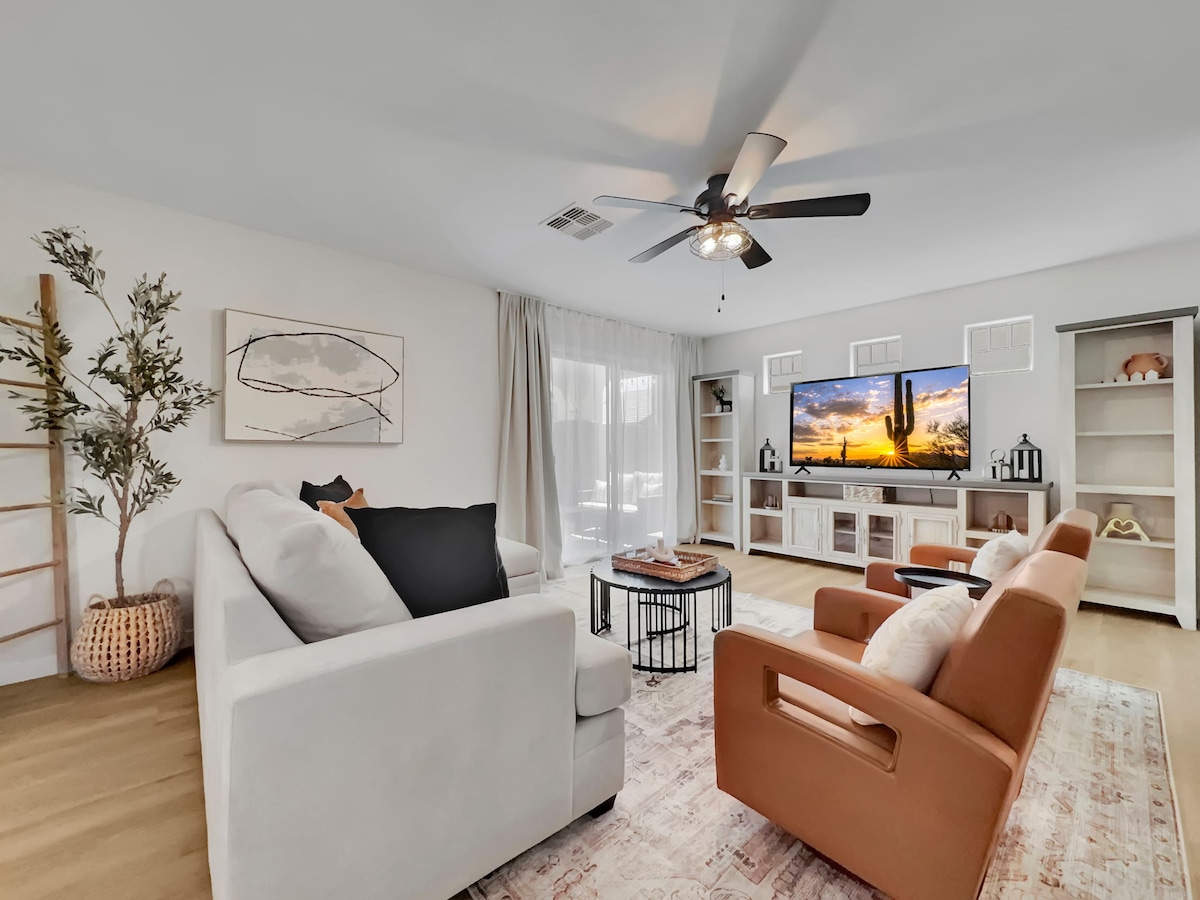 Fan i gcroílár Downtown Gilbert - siúlóid 10 nóiméad tríd an gcomharsanacht chuig bialanna, beáir, siopaí caife, agus an Túr Uisce íocónach. Meascann an teach baile mór galánta seo draíocht Arizona le compord teolaí, foirfe le haghaidh saoire deireadh seachtaine, turas oibre, nó imeacht áitiúil. Á óstáil ag Sáróstach freagrúil ar breá leis nó léi aíonna a chur ar a suaimhneas. Déan áirithint anois agus bain sult as Gilbert mar a bheadh duine de bhunadh na háite ann!