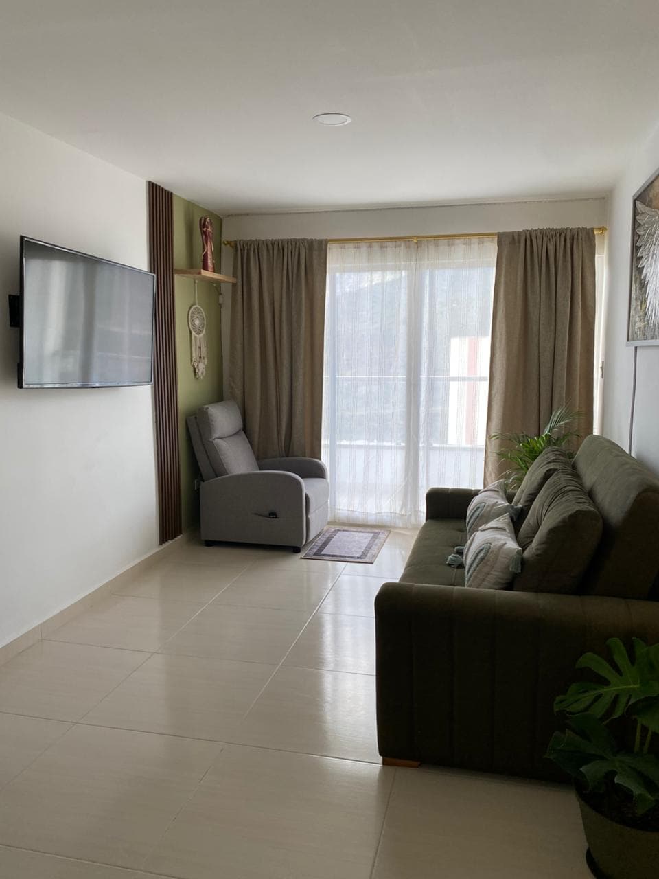 Fáilte go dtí ár n - árasán teolaí in San Gil! Lonnaithe i gcroílár Ionad Siopadóireachta Sangil Plaza, tá compord agus áisiúlacht ar fáil inár n-árasán, nach bhfuil ach cúpla céim ó do dhoras. Tá dhá sheomra leapa inár spás: ceann amháin ina bhfuil leaba dhúbailte chun go mbeidh tú in ann do scíth iomlán a ligean, agus seomra leapa breise ina bhfuil dhá leaba shingil d'aíonna nó do bhaill teaghlaigh. Chomh maith leis sin, sa seomra suí, gheobhaidh tú leaba thoilg chompordach d'aíonna breise. Wi-Fi ardluais chun tú a choinneáil ceangailte.