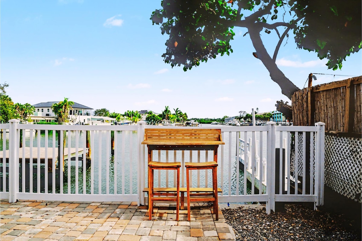 Fáilte chuig Suites Uiscebhealaigh Ionchósta! Tá ceithre aonad 1 seomra leapa/1 seomra folctha le leapacha rí, leapacha banríona, síleálacha boghta, agus cistin nua-aimseartha ar fáil sa 4-plex seo atá athchóirithe agus réidh le húsáid in Indian Rocks Beach. Bain sult as níochán ar an láthair, bacainní tuile saincheaptha, radhairc ar an Uiscebhealach ó na haonaid tosaigh, agus duga príobháideach do bháid—foirfe do bháid. Dhá bhloc ar shiúl ón trá agus achar siúil chuig bialanna agus siopaí den scoth.