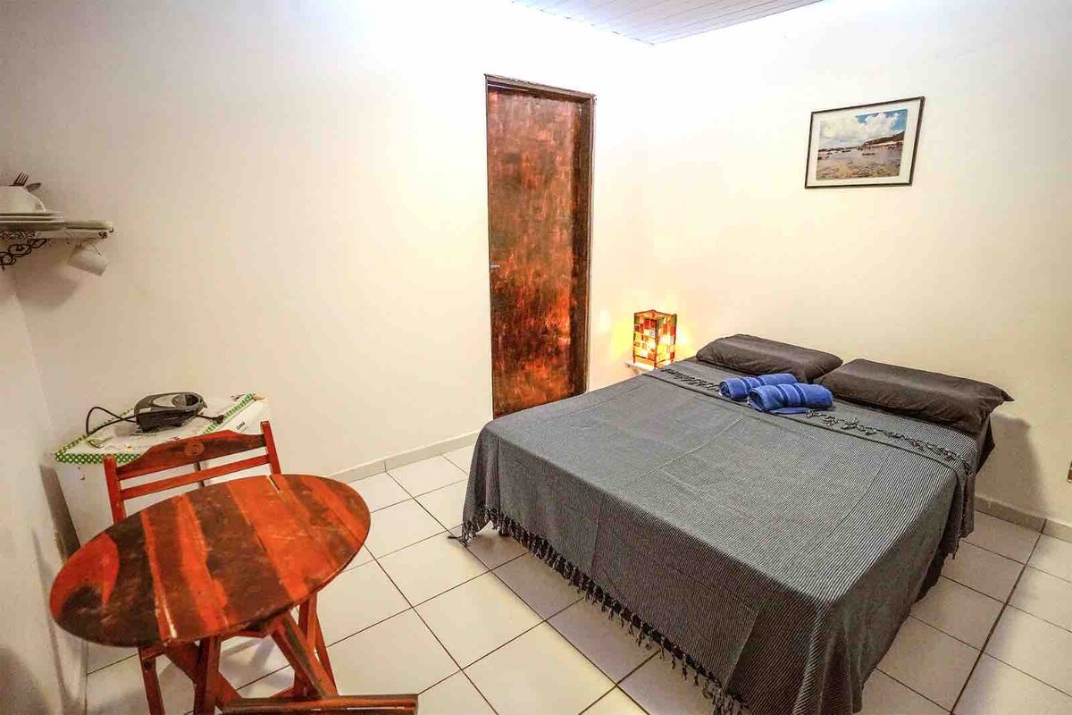 Svuít le maisiú simplí, an - fhairsing agus aerach. Leaba dhúbailte le teilifís spéir, mionbheár, ámóg taobh istigh den seomra, balcóin, comhartha Wi - Fi saor in aisce, cithfholcadán te. Tá ár sráid marbh agus an - chiúin. Táimid suite 600m ó thrá lár Pipa agus an av. Baia dos Golfinhos cá bhfuil na bialanna, na beáir agus na siopaí is fearr ar aon nós, an ceann is fearr as seo.