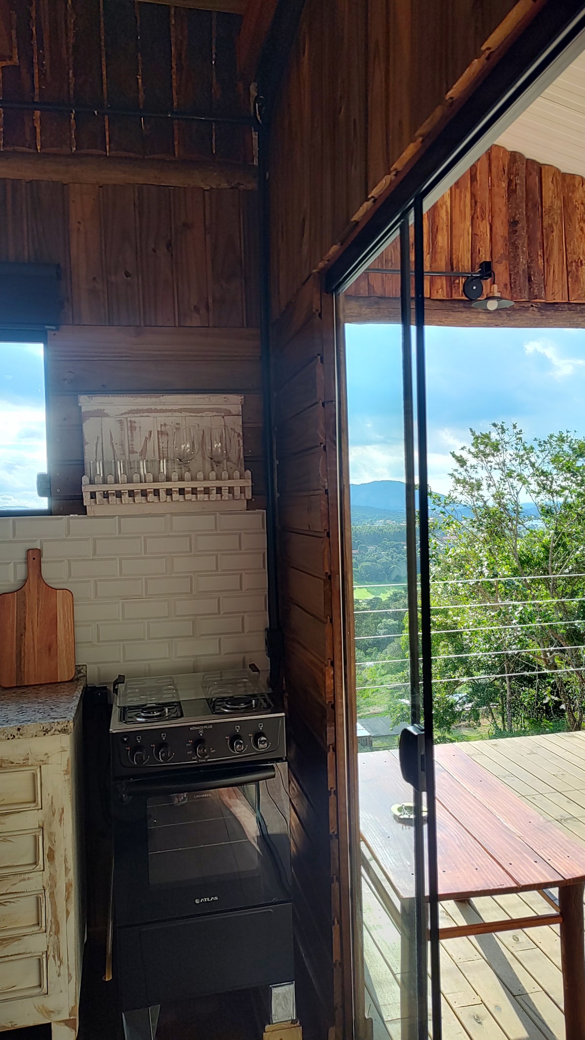 Faigh amach faoi gheasa Serra da Mantiqueira sa chábán seo atá deartha ionas gur féidir leat machnamh a dhéanamh ar éirí na gréine gan éirí as an leaba. Tar ar do shuaimhneas inár spá téite, ag stánadh ar an líonra lastuas agus luascadh. Tá seomra comhtháite sa chabana ina bhfuil leaba chluthar na Banríona. Sa bheo/sa chistin, freastalaíonn futon an - chompordach ar bheirt aíonna eile, rud a fhágann go bhfuil an t - eispéireas oiriúnach do theaghlaigh. Tá cosáin agus easanna beaga sa réadmhaoin freisin.
