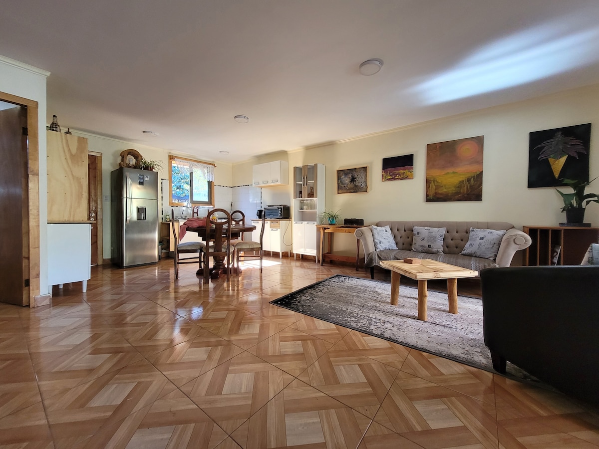 Relájate en un espacio tranquilo y de buen gusto, piscina exterior con vista a las montañas ,terraza privada y jardín rodeado de bosques nativo cabaña equipada con cama matrimonial en habitación, cama nido en el living ,kincho con parrilla y cocina exterior. Consulta por programa de trekking ,masajes. incluye: Sabanas, toallas, calefacción y estacionamiento . Estamos a pasos de restaurantes ,tiendas y atractivos de San Alfonso Los esperamos!