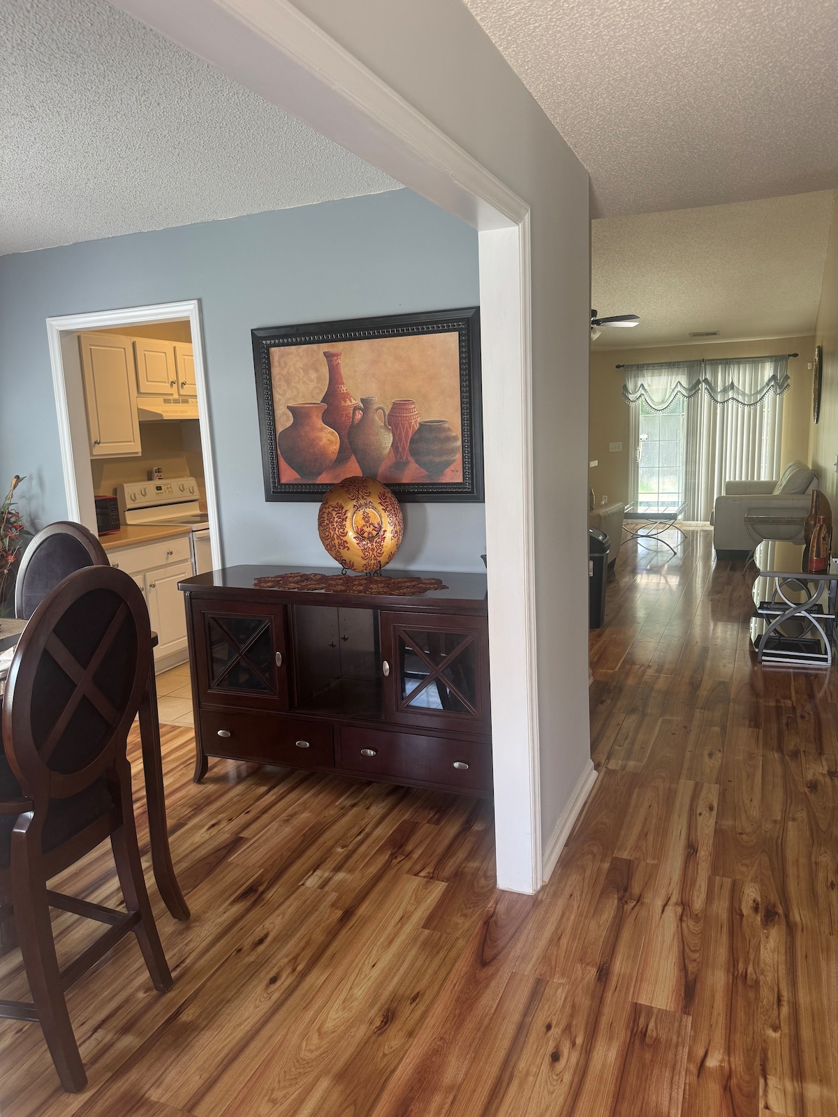 Nóiméid iontacha plean urláir oscailte chuig Vidant, ECU, Brody, siopadóireacht, bialanna, aerfort & Uptown. Comharsanacht álainn shocair. Soláthraíonn cúlchlós uathúil Oasis Shuaimhneach. príobháideacht, stíl, feidhm, agus an suíomh is fearr do dhuine ar bith atá ag tabhairt cuairte, ag obair, ag taisteal nó ag foghlaim, i gceantar Greenville, NC. Cistin lánstóráilte. Teallach, póirse scagtha, meaisín níocháin/triomadóir, urláir & tíleanna crua - adhmaid. Teach cliste le cluichí & leabhair. Níl Peataí **Déan teagmháil liom le haghaidh lascainí do thréimhsí fanachta níos faide **