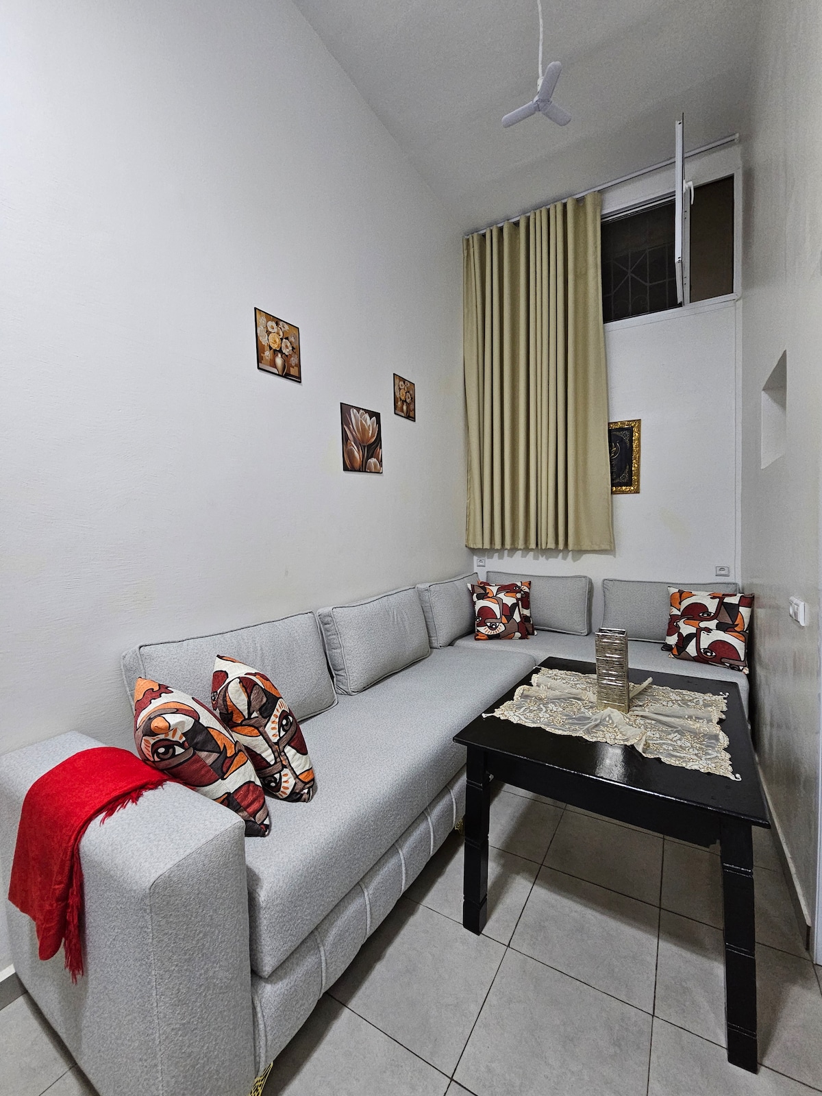 Fáilte chuig do shaoire ghalánta i gcroílár Agadir! Tá áit chónaithe gheal, cistin atá feistithe go hiomlán, agus na bunriachtanais go léir le haghaidh fanacht compordach ar fáil san árasán teolaí 1 sheomra leapa seo. Lonnaithe i lár an bhaile, ní bheidh ionat ach céimeanna ó bhialanna, ó shiopaí agus ó nithe is díol spéise áitiúla. Cibé acu an bhfuil tú ar cuairt don obair nó spraoi, bain sult as an meascán de chompord nua - aimseartha agus de dhraíocht na cathrach. Tar éis lá a chaitheamh ag iniúchadh Agadir, tar abhaile chun do scíth a ligean agus do scíth a ligean - tosaíonn d'fhanacht foirfe anseo!