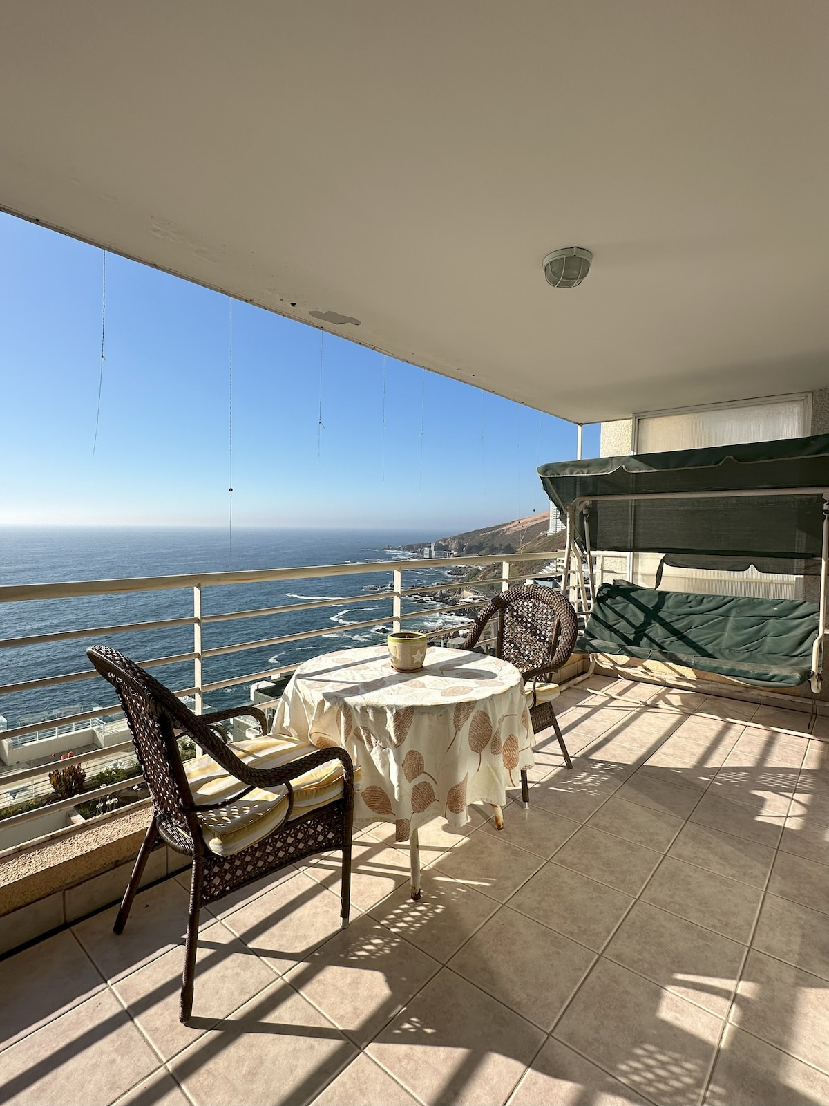 Departamento ubicado frente a la playa de Cochoa en Reñaca, vista insuperable (primera línea frente al mar), terraza, estacionamiento cubierto privado, piscina adultos, piscina niños, piscina temperada, gimnasio. 3 dormitorios (principal en suite con cama King), 2 baños, Smart TV 4K 55'', TV Cable HD, WiFi fibra 600 Mbps, cocina full equipada, encimera vitrocerámica, lavadora, todo el equipamiento es eléctrico. Ascensores. Funiculares para bajar a playa.