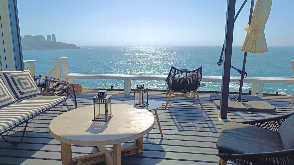 Fáilte go Costa Encanto • Boutique Retreat • Reñaca Faigh blaiseadh de imeall na farraige agus bain sult as árasán boutique galánta ina bhfuil ardán príobháideach ar Subida el Encanto, le radharc iontach ar an aigéan i gcroílár Reñaca & lig duit féin a bheith clúdaithe ag fuaim shuaimhneach na dtonnta🌊, le dearadh comhaimseartha agus na saoráidí go léir le haghaidh fanacht dodhearmadta, céimeanna ón trá, bialanna agus siamsaíocht oíche. Cuir draíocht Reñaca in áirithe agus braith