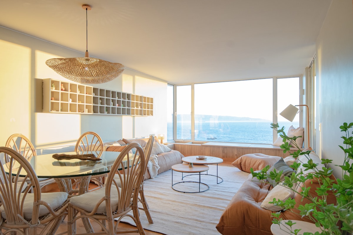 180° Sea View that will steal your heart! Large terrace, fully equipped kitchen 🍳, central heating 🔥, TV + internet 📺💻, 2 pools (1 heated) 🏊, jacuzzi, gym 💪, 24h security. Supermarkets, pharmacy, gas station & mall 5 min away 🛒. Reñaca beaches 5 min by car 🚗, public transport 2 min 🚌. Ideal for couples 💑 and families. Sheets & towels included 🛏️. ⭐ We’re Superhosts with 5⭐ reviews! 📖 Read the comments & book with confidence! Barbecue: $30,000 🔥