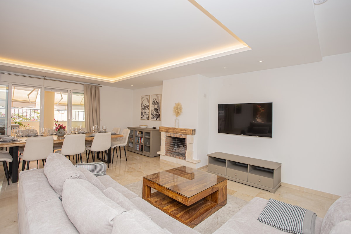 Bí réidh le taitneamh a bhaint as ár n - árasán fairsing nua - aimseartha (100m2) cois trá & feistithe go hiomlán. Athchóirithe le déanaí, le stíl uathúil Chic Ibicenco. Tá ardán os comhair na farraige, aerchóirithe, seomra en - suite agus ceann eile le 2 leaba shingil, seomra folctha, aerchóiriú, cistin agus seomra suí. Suite 100mt ó thrá Alicate lena bheáir trá. Gheobhaidh tú cógaslanna, bialanna, ollmhargaí, iompar poiblí in aice láimhe. Níl sé ach 5 nóiméad ó lár Marbella. Táimid ag fanacht leat!