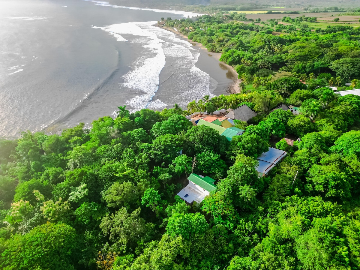 Situated on 9 acres, this 3 bedroom beachfront home (with infinity pool) is a perfect place to relax and immerse yourself in nature. Watch the waves from the porch, take in the beautiful sunsets from the hammock, and stroll the property to pick fruit from our trees. Surf uncrowded waves, walk down secluded beaches and experience all that Northern Nicaragua has to offer.