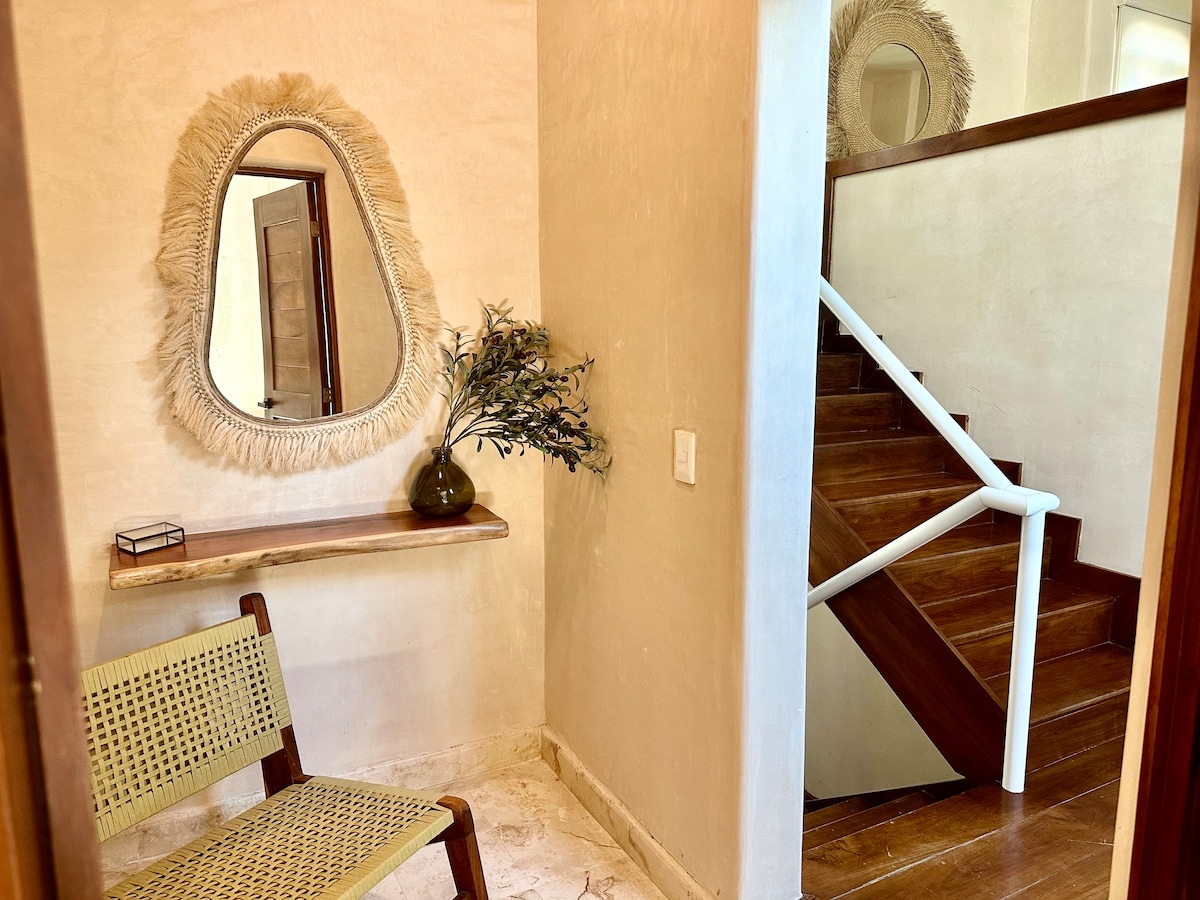 Villa atá suite i bpobal geataithe eisiach Playacar, is é do thearmann foirfe é chun taithí a fháil ar Playa del Carmen. Níl ach 8 nóiméad siúil ón trá agus ó Quinta Avenida, tá gach rud a theastaíonn uait le haghaidh fanacht compordach sa teach fairsing seo: idirlíon ardluais, aerchóiriú i ngach seomra, agus cistin lánfheistithe. Le trí sheomra leapa fairsinge ina bhfuil radhairc den ghairdín agus den chúrsa gailf, tá sé oiriúnach do theaghlaigh nó do ghrúpaí cairde.