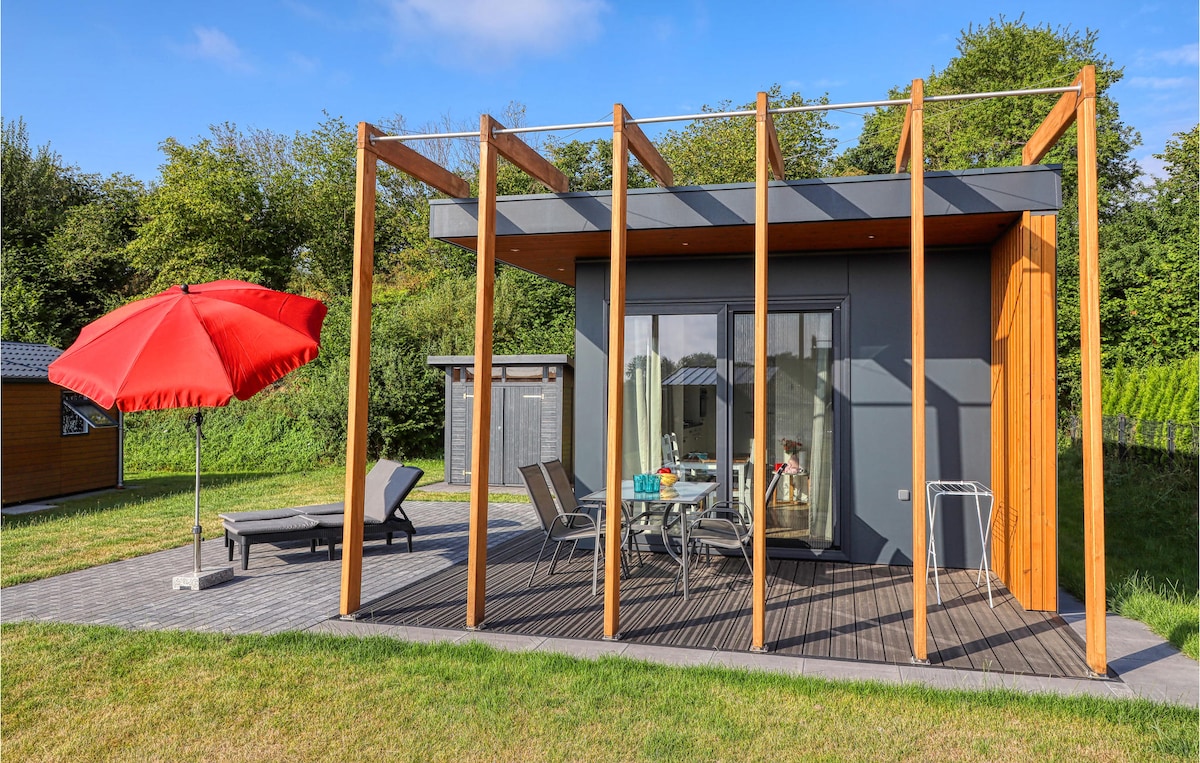 Cuirimid ár dteachín deireadh seachtaine nua - thógtha sa Danmhairg ar fáil. (críochnaithe in 2020). Tá sé an - bheag ach tá gach rud a theastaíonn uait le haghaidh saoire ann; ó thaobh saoráidí agus folláine de. Tá an teachín suite i sráid phríobháideach shíochánta. Tá an chomharsanacht ciúin agus an - chairdiúil. Tá an trá, an bácús, an cócaire taosráin, na hathchóirithe, siopa orgánach, siopadóireacht trá & Rewe faoi fhad siúil. Tá an ghrian ag taitneamh sa chroí 365 lá sa bhliain, spéartha réaltaí níos áille ná in aon chathair mhór. Go hálainn.
