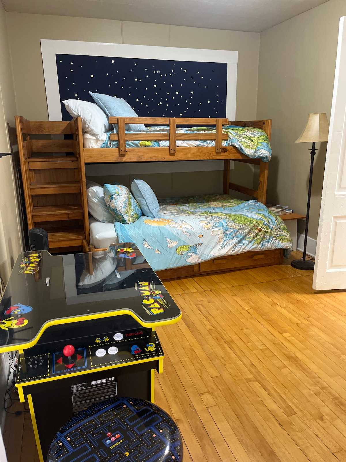 Bain sult as maorgacht ré atá thar a bheith álainn agus tú ag fanacht sa Chlár Náisiúnta seo de chuid na hÁiteanna Stairiúla. Chomh maith leis sin, an t - iar - ospidéal. Tá dhá sheomra mhóra (seomra leapa agus spás maireachtála) sa svuít fhairsing 3ú leibhéal seo. Déanfaidh an flúirse de shoilsiú nádúrtha, póirse príobháideach, agus bealach isteach príobháideach (rachaidh tú trí chistin an óstaigh) le haghaidh fanacht uathúil. Tá an seomra suite faoi fhad siúil ó bheáir agus ó bhialanna iontacha. Nóta: Tá cat sa teach.